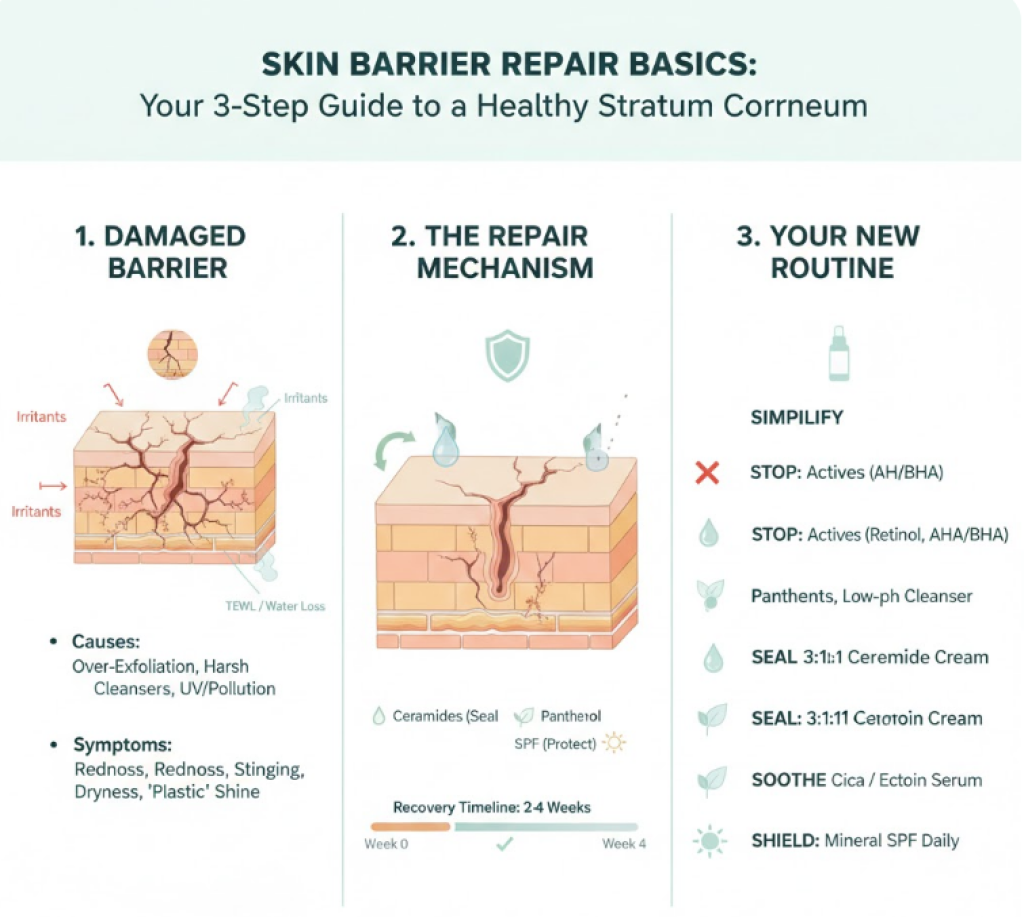 When we discuss the skin hydration and acne connection, we have to talk about the stratum corneum. This is the outermost layer of your skin, often called the “moisture barrier.” Its primary job is to act as a security guard, keeping moisture in and harmful irritants—like pollutants and Cutibacterium acnes—out.